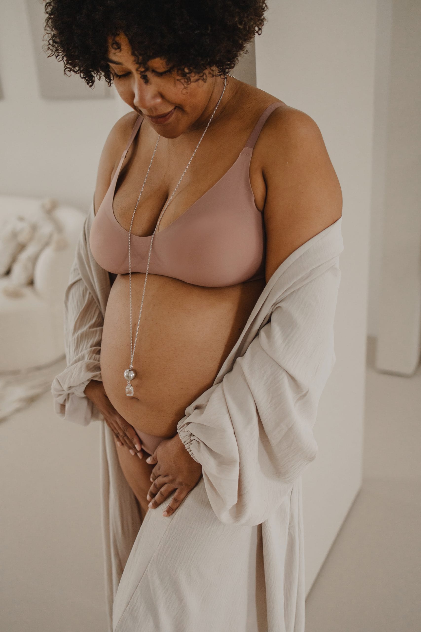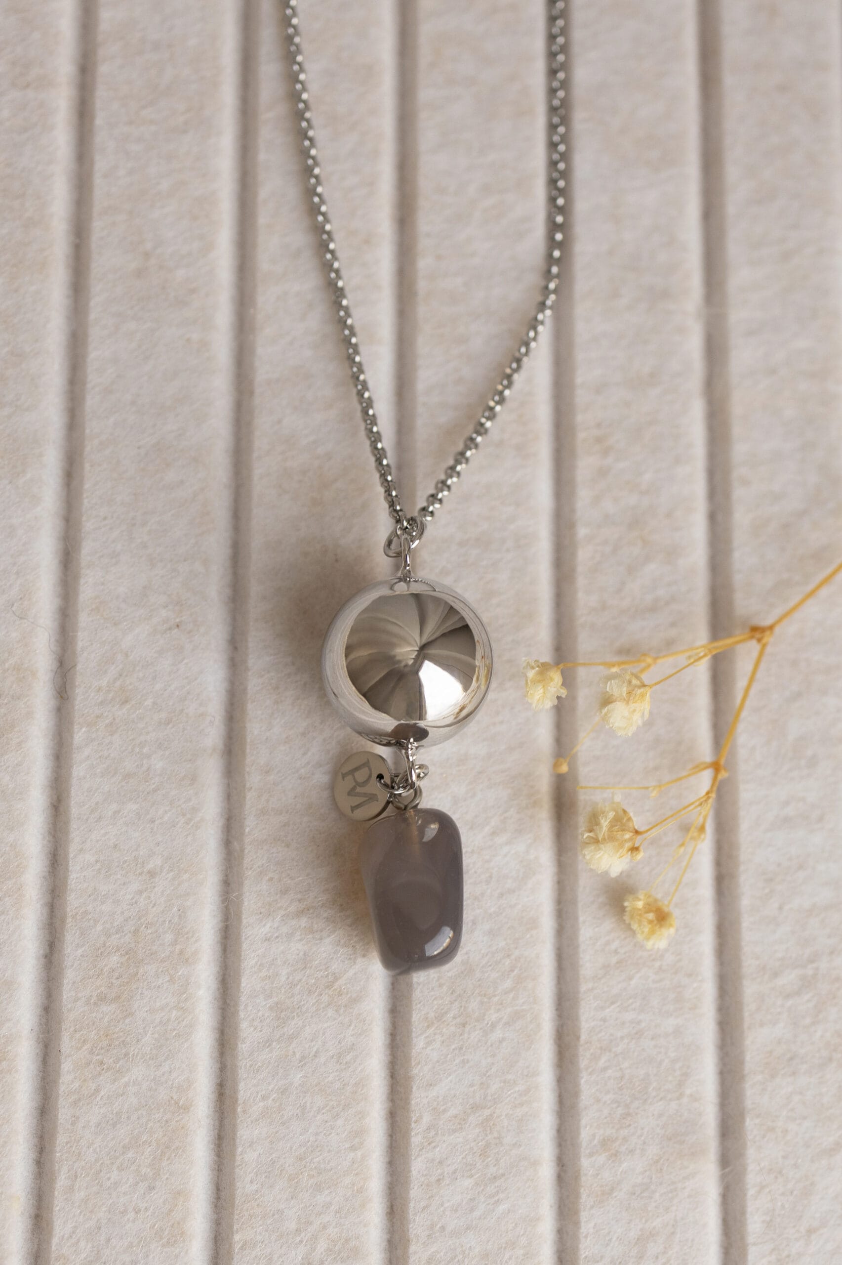 Linn grey agate | Bola zwangerschapsketting [ID-639]