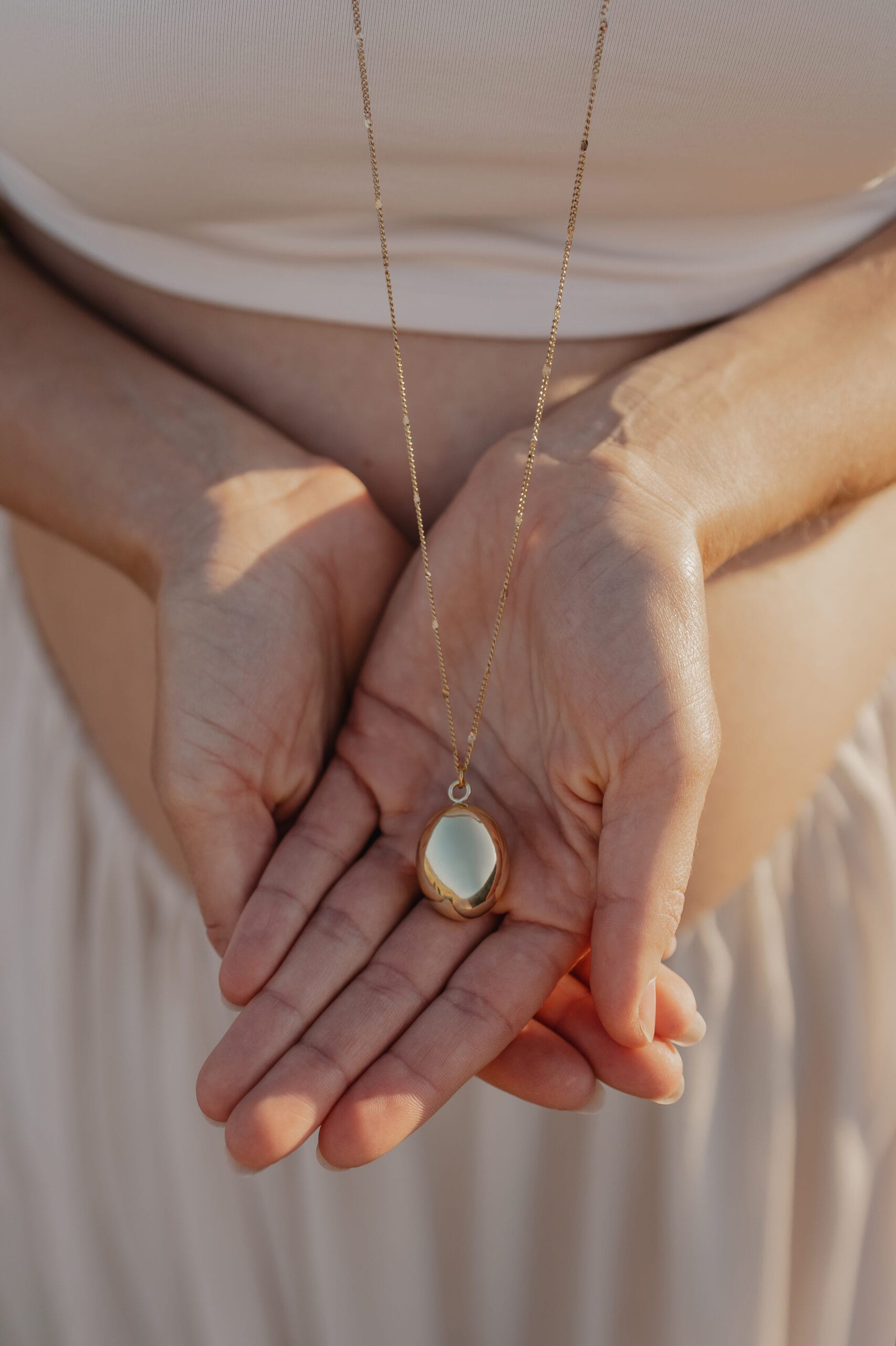 Draag de bola zo dat de bel op je buik rust, bij voorkeur ter hoogte van de navel. De bedoeling is dat de geluidjes die de bel maakt tijdens het bewegen prettig zijn voor de baby in de baarmoeder. Zorg ervoor dat de ketting goed en comfortabel zit. Je kunt de bola de hele zwangerschap dragen.